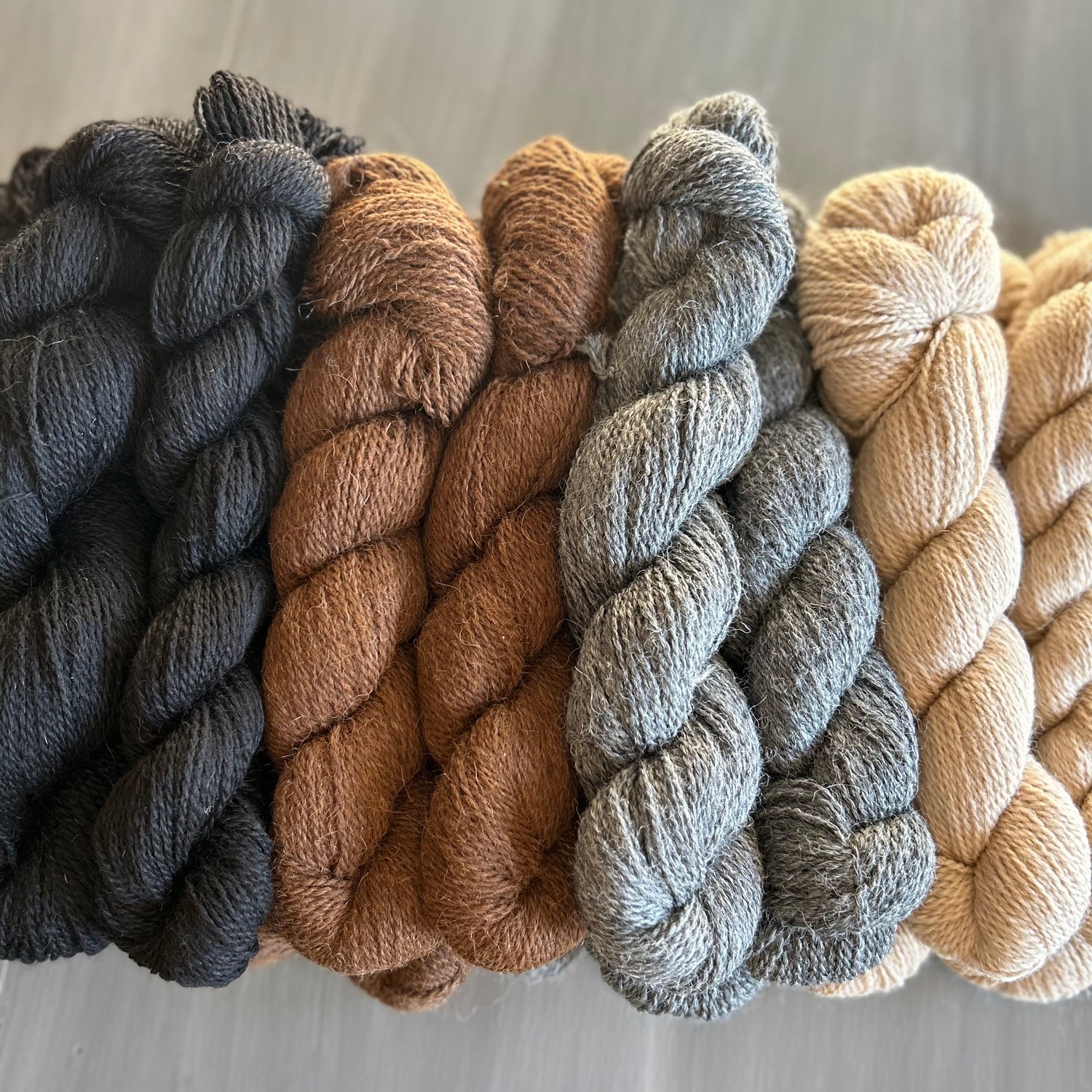 The natural color of alpaca ranges from white to black with many shades in between. The natural colors of alpaca are so amazing and provide so many options for the end product.